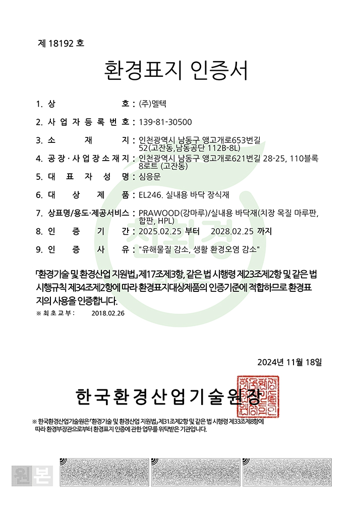 Certificate of Korea Eco-Label
