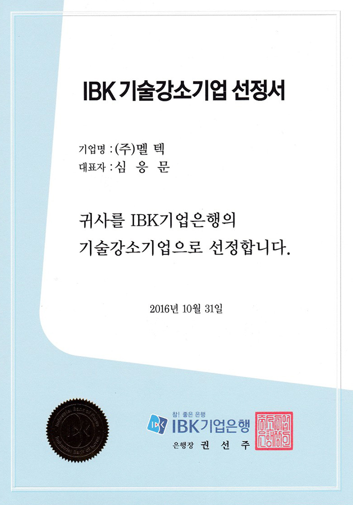 IBK Technology Power Company Selection Letter