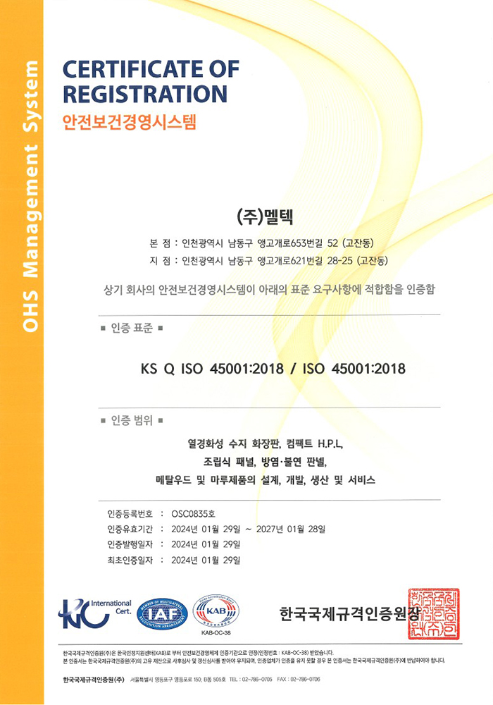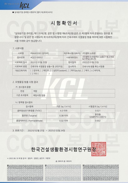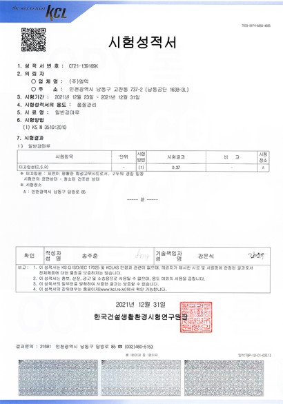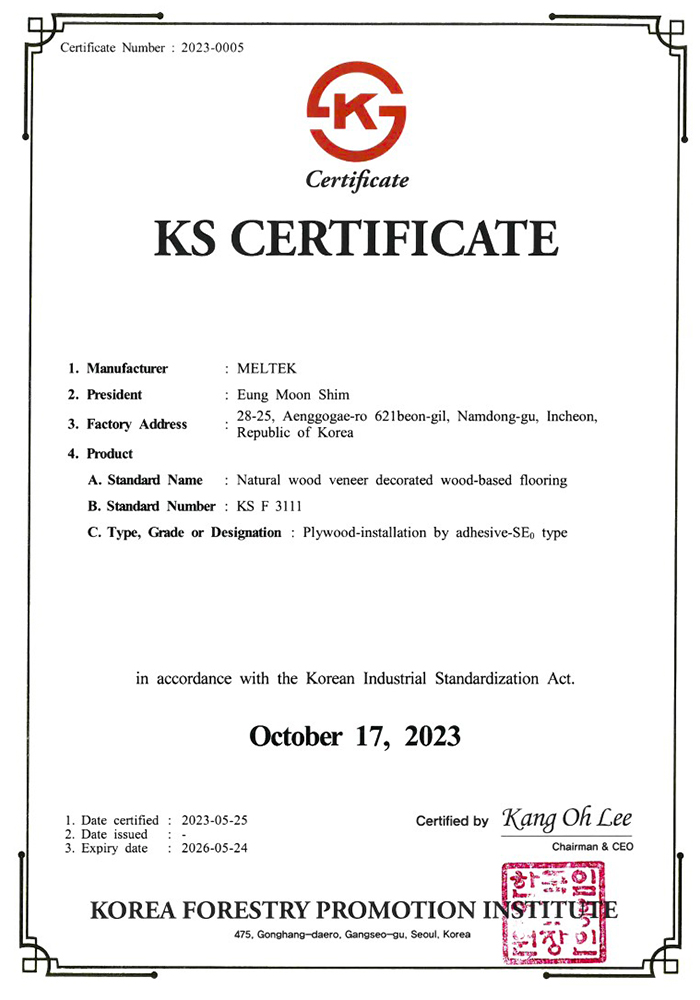 KS F 3111 Product Certificate