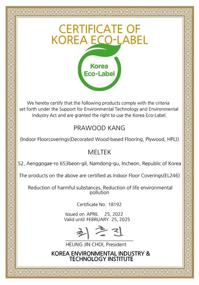 Certificate of Korea Eco-Label