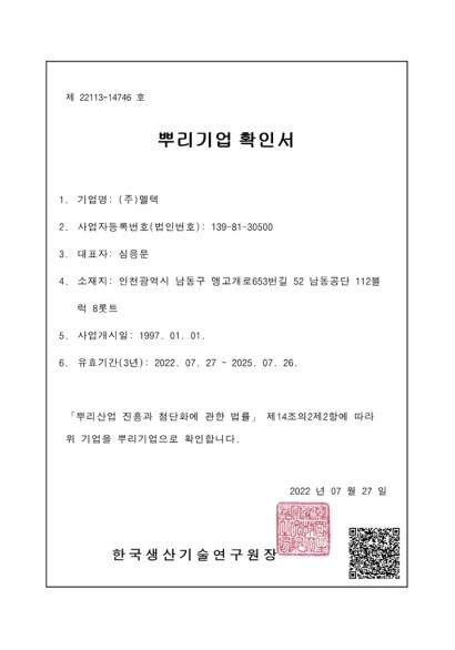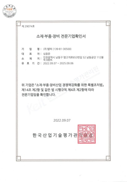 KS M 3803 Product Certificate
