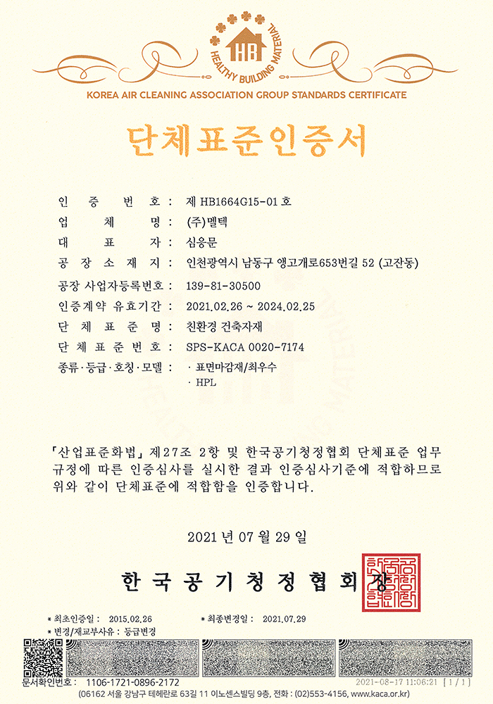 Healthy Building Certification 페이지 정보 작성자 멜텍 댓글 0건 조회 2회 작성일 26-02-22 16:07 목록 본문 MELTEK_HPL 이전글KCL Wood Product Specification and Quality Inspection Result Notification 26.02.22 다음글KTR test confirmation 26.02.22